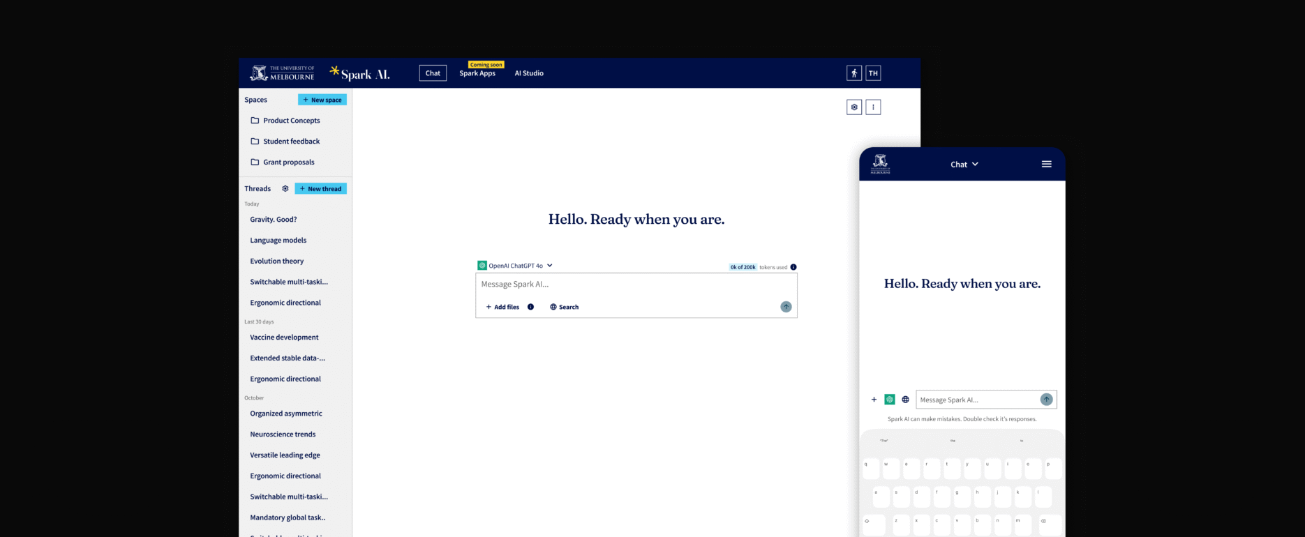 Through workshops and conversations with senior staff, we unpacked why the university needed its own AI tool, where people were already using public models, and what “success” should look like for Spark AI.